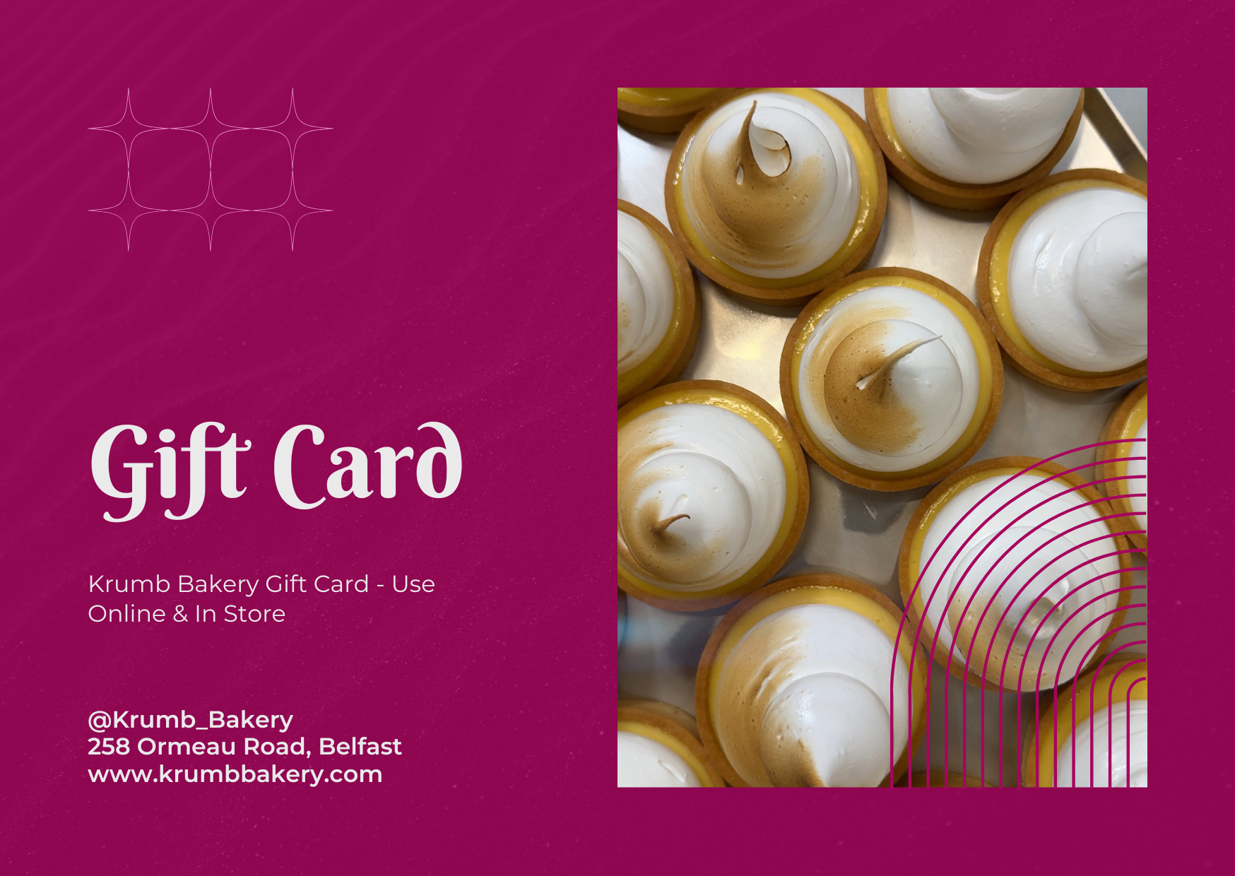 Share the gift of artisanal bakes with a Krumb Bakery gift card – the perfect present for any food lover in Belfast and beyond. Our digital gift cards can be used in store or online. Our Seasonal specials celebrate Ireland's finest local ingredients.